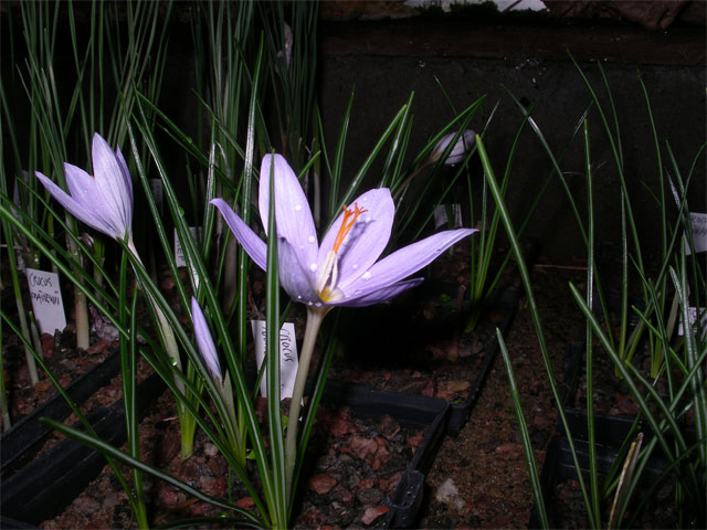En sådan här regnig höst är de höstblommande krokusarna tacksamma att få vara i kallväxthuset istället för i trädgården. Crocus tournefortii blommar dessutom ganska sent och enligt böckerna ska blomman tydligen vara utslagen även på natten.