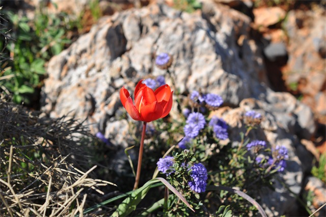 Tulipa goulimyi hittar man på väg mellan Leonidi och Neapoli (distrikt Lakonia).