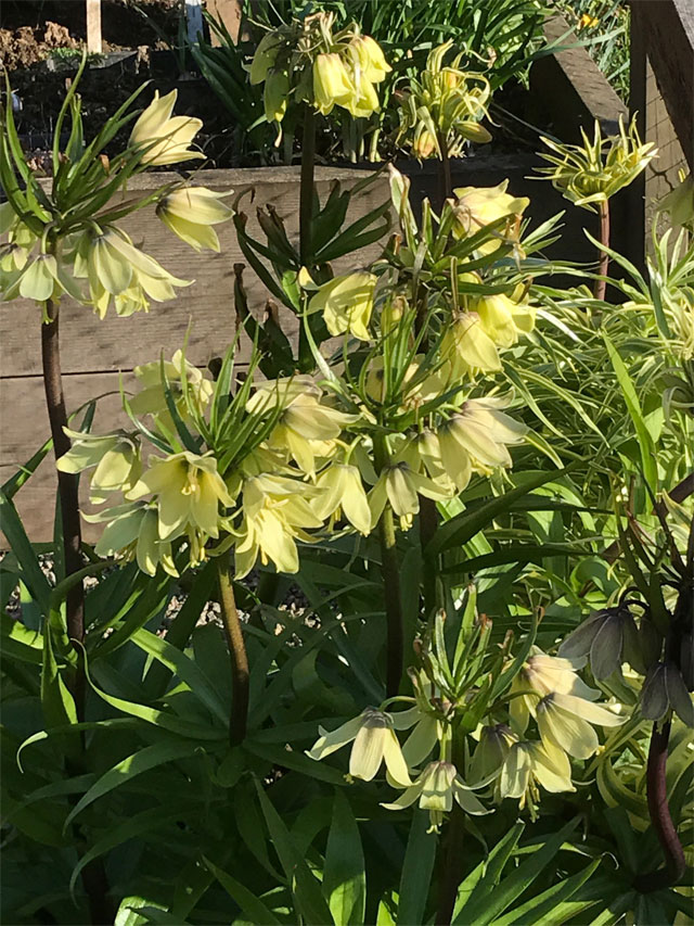 Idag är samtliga klockliljor ute och väsnas. Fritillariorna ringer nog in sommaren eller kanske kallar dom på liljebaggarna?