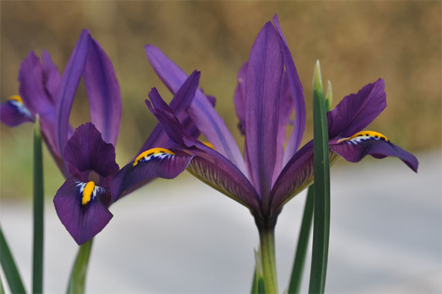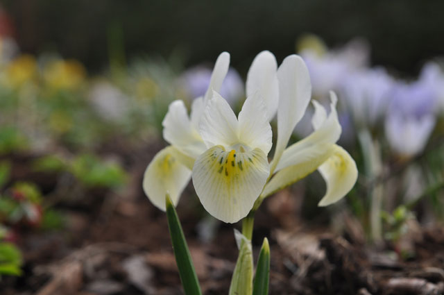 Krokusarna är nu något tilltufsade efter blåst och alla humlor. Då står de små irisarna sig stadigare och pockar på uppmärksamheten.